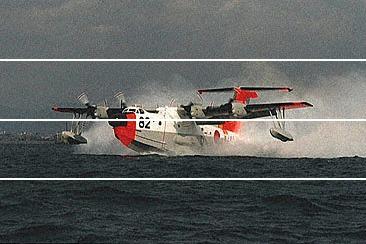 | 特徴 | 海上自衛隊の洋上救難機として日本独自で開発された水陸両用の大型機で、その優れた外洋運用性は世界に類を見ない能力があり、平成12年7月21日時点において600回出動595人の救助実績をあげている。水陸両用機であるため、空港設備のない離島の救急患者や海上遭難者を救助して陸上空港に着陸し速やかに病院に送り届けることが可能。 |