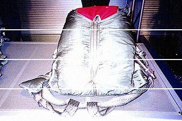 ガン・デブロイト・パラシュートと呼ばれており、脱出高度を感知すると自動的に火薬の力を利用して強制的に落下傘が開く構造になっている。 |