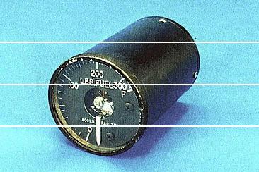 | 特徴 | 燃料タンク内の直流式フロート型の発信器信号を受けて量の指示をする。1/2フルスケール以下では残量が読み易くするため、目盛間隔が広くなるように製作している。搭載航空機:OH-6電源:28VDC。 |