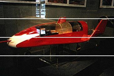 | 特徴 | 小型自動着陸実験(ALFLEX)機は懸吊装置と合体した形状で母機ヘリコプタから懸吊され、高度約1500mまで上昇する。ヘリコプタが分離速度である時速166kmまで加速した後、5自由度懸吊飛行(一点吊り状態)に移り、滑走路から2700m地点で分離され、姿勢を安定させながら時速180kmで滑走路に着陸する。本実験は航空宇宙技術研究所と宇宙開発事業団が共同で平成8年に実施した。その模型。 |