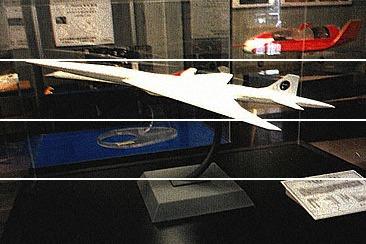 | 特徴 | 小型超音速実験機/模型:次世代のSSTは、コンコルドに比べ、乗客数が約3倍、航続距離は約2倍、窒素酸化物(NOx)の排出量は約4分の1、静かさはジャンボジェット並となり、より多くの人を、より遠くへ、よりクリーンに運ぶことが出来る。それに必要とされる先進的な技術の確立を目指して、小型超音速実験機の開発、飛行実験を行っている。その模型。 |