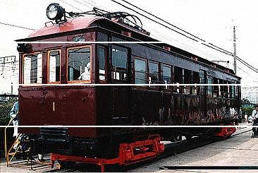 箕面有馬電気軌道(現・阪急宝塚線)が開業に際して新製した車両。1927年に車体を半鋼製に改造した。1957年に半鋼製時代の形態に復元し,保存。 |