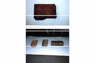 横浜元町公園より発掘、刻銘あり。4点(有孔3、無孔1)。225×112×68mm, 107×220×58mm。 |