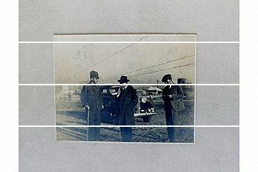 特徴 中国熱河承徳飛行場にて大同行きのセスナ機を待つ。伊藤忠太・五十嵐牧太・熱河省次長連氏。キャビネ判。