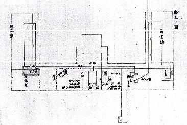 特徴 | 附指定。明治13年7月の明治天皇庁内御巡幸図。創建当時に三重県庁新築掛として従事した清水義八の図面。昭和39年・48年遺族より明治村へ寄贈された。和紙に墨、室名記入。209×295mm。 |