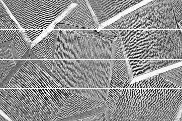 特徴 | 日本では高度成長期の住宅建設とアルミサッシの普及に伴い型板ガラスが普及した。特に1961年から75年頃までは「型模様戦争」と呼ばれる激しい販売競争により数十種の製品が出たが、殆どは1年程の短命であった。この製品もその一つで、大柄な構成だが、その一つ一つに細かな線をハッチングすることにより、光の方向によって輝きがかわる工夫をしている。この細線の手法は1962年の「このは」で初めて試みられた手法である。 |