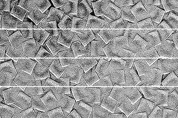 特徴 | 日本の経済の復興は迅速であったが、ガラス業界もこのころは既に激しい競争社会を迎えていた。型板はまだまだ戦前の模様を販売していたが、中にはこのような新しい柄も試みはじめられていた。そのような新柄の先駆的な例である。 |