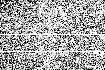 特徴 | 日本では高度成長期の住宅建設とアルミサッシの普及に伴い型板ガラスが普及した。特に1961年から75年頃までは「型模様戦争」と呼ばれる激しい販売競争により数十種の製品が出たが、殆どは1年程度の短命であった。この製品もその一つであるが、殆ど凹凸の無い型板で、レコードの溝のような微細な模様を転写している。型ロールの製作にもガラスの製造にも高度な品質管理が求められる技法で、同様の手法に「こずえ」がある。 |