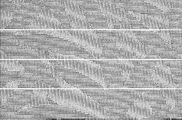 特徴 | 日本では高度成長期の住宅建設とアルミサッシの普及に伴い型板ガラスが普及した。特に1961年から75年頃までは「型模様戦争」と呼ばれる激しい販売競争にがあった。この製品はその最後の頃に登場したが、一見しただけではレースのカーテンと全く区別がかないという特徴を持っている。型板が衰退した原因の一つは住宅用のカーテンの普及にあるが、それを裏付けるかのような製品である。 |
