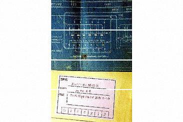 特徴 | 「昇降機工事」ファイル以外に、エレベータ関係の図面が3束ある。その一つで、全3頁あり、マルチコール式昇降機配線図と、500型巻場機械図面である。エレベータは各階に呼出釦を備え、自動運転されており、その仕組みを、これらの図面を通して知ることができる。 |