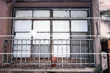 江戸川アパートメント和室鋼製サッシ(引違戸・欄間付き) |