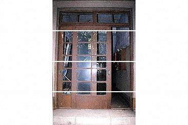 江戸川アパートメント階段室1階出入口鋼製扉(引違戸・欄間付きタイプ) |