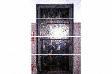 特徴 | 江戸川アパートメントには社交室があり、住民の会合のほか、コンサートや慶弔行事用にも利用された。アパートにとっては外部者との交流の場でもあり、それにふさわしく装飾格子付きの建具がついている。 |