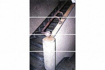 特徴 | 手摺壁から内側に張り出した手摺は、途切れることなく最上階まで続いており、踊り場での方向転換時にも常に体を支えることができる。手摺の連続性は踊り場での階段段鼻の位置関係で決まるが、現代でも階段手摺の誤った配置をする設計者が多い中で、装飾性と安全性を両立した設計には学ぶべきものが多い。また、最上階まで1本のチューブを誤差なく繋げるための製作・施工技術も評価できる。 |