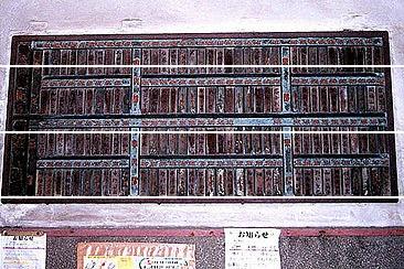 特徴 | 江戸川アパートメントの一号館5階・6階は独身貸室になっており、総室数約140室に及ぶ独身居住者を管理するために、管理室脇に設置された名札掛。仕様書には「其の号数其他所要の文字を浮き出さしめ砲金鋳物其れ等にて現寸図の通り仕拵ええぶし仕上げとし埋込ボールトにて盗難の虞れなき様取り付け」とある。 |
