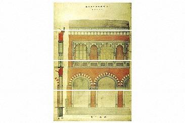 特徴 | 上野博物館はわが国最初の本格的な博物館として、明治14年に上野公園内の現東京国立博物館の位置に建設された。コンドルにとっても来日早々に手がけた作品である。アーチの紅白まだら積みや独特の曲線、2階のヴェランダのくびれた柱と花弁状のアーチ、正面左右に乗る帽子状の屋根付の塔から、インドのイスラム様式を取り入れていることが判る。 |