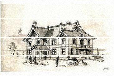 特徴 | コンドルによる本格的な和風意匠の建築として知られている。煙突には石灯篭の形を応用し、窓は鎧戸のついた上げ下げ窓を用いるなど、創意的な折衷が見られる。同時期には長野宇平治による和風の奈良県庁舎などが建設されていた。 |