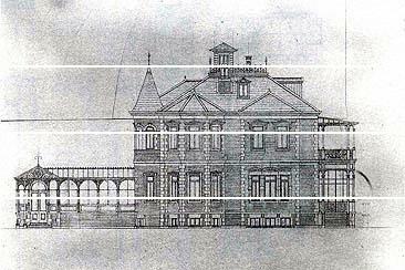 特徴 | この住宅は、湯島三組町に明治33年5月に竣工したが、写真が残っていないため、図面どおりに建設されたかは不明である。図面からは、ルネサンス様式で、鉄骨造のベランダが特徴となっていることが判る。また、今日残されているコンドル設計の図面には暖房関係のものが多いが、これは高田商会が金属製品の輸入や暖房設備を取り扱っていたからである。高田商会はわが国における欧州の機械輸入の最大商社であった時期があり、海外にも支店を持ち、機械製造も行っていたが、大正14年に休業に至った。 |