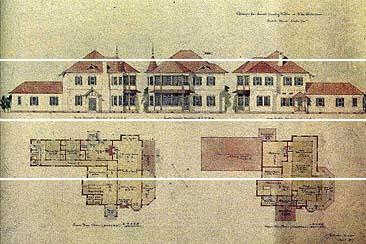 特徴 | 図面に「Country Villa at Kita Shitaura」と記されているものの、誰のために計画された別荘であるのか定かでない。大正6年とはコンドルの最晩年に当たる時代で、図面上では近代的な優れた建物である。建設されたと考えれらる現在の北下浦地区(津久井・長沢・野比)は、当時、真に交通の不便な所であった。 |