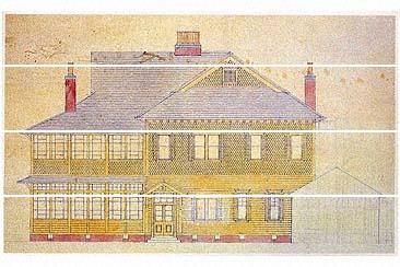 木造2階建が明治39年6月に完成したと伝えられている。渡辺専次郎は三井物産の幹部であった。現在は江ノ電和田塚駅付近の住宅地になっている。 |