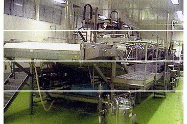 特徴 | ドイツALPMA社のコアギュレーターは、カマンベール等ソフトチーズのカードの連続生産を可能にした装置である。日本には2台導入されている。写真は1999年(平成11年)に導入された2台目の新鋭機で、装置の洗浄性が向上している。 |