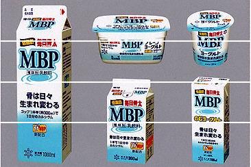 特徴 | 「毎日骨太MBP」は2001年3月発表の乳飲料。牛乳や母乳に含まれる微量成分である乳塩基性たんぱく質(MILK BASIC PROTEIN)をカルシウム、ビタミンDとともに添加した乳飲料であり、「MBP」の利用技術は国内はもとよりアメリカ、ヨーロッパ、オセアニアでも特許を取得しており、健康に関心を持つ層を中心に高い支持を得ている。 |