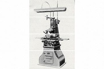 特徴 | 黒田狭範製作所(後の黒田精工)において、金型製作のために、精度が高く、使い易い平面研削盤の自家製作を志向し、全体に堅牢な構造とし、主軸はマッケンセン式の動圧軸受、テーブル左右動は右手ハンドル操作として1953年(昭和28年)に1号機を完成させた。金型工場に多数台設置され、高精度金型の増産に大きく寄与した。後に外販を求める声に応え、1963年(昭和38年)に本格的な市場販売を開始した。写真は1号機デザイン。 |