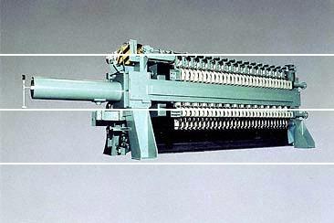 特徴 | 全室同時開閉板、全室単独ろ布走行方式の採用により、高効率脱水を可能にした全自動フィルタープレス。1972年の開発以来、現在までに1000台以上の納入実績がある。 |