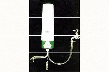 水道の蛇口に直結し、バルブ操作で浄水と原水が得られる粒状活性炭浄水器。現在広く普及している家庭用浄水器の先駆けとなった商品。 |