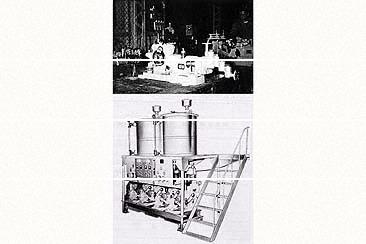 特徴 | 化学プラントの薬液注入に比例定量のポンプが必要になり開発を依頼され、中央のクランクで左右のプランジャーを動かし、プランジャーのストロークの可変機構をつけた比例定量ポンプ国産一号機を開発した。その後米国ミルトンロイ社製ポンプと競合し、ストローク可変機構等の改善を行い比例定量ポンプの国産品として広く使用された。本ポンプ・タンク・計器・計装盤・配管を装置化してボイラー薬注装置の国産一号機が1960年(昭和35年)に完成した。 |