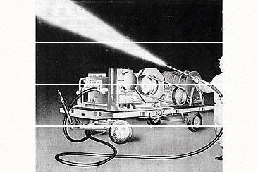 特徴 | 高圧水をノズルから噴射して汚れ等を落とす洗浄装置である。3連型高圧プランジャーポンプ、ホース、ノズル、リール類を移動可能の台車に装着した。国産一号機として、噴射量3M3/Hr、噴射圧力250kg/cm2のクリーニングジェッターを旧日本合成ゴム四日市工場の建設現場用に納入した。以後汎用機としてジェットクリーナーを開発された。 |