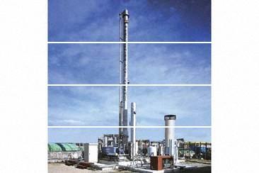 特徴 | 下水を処理する過程で発生する消化ガスを、高圧水吸収法により都市ガス相当まで精製する実証設備である。高圧の塔内で二酸化炭素と硫化水素を水に吸収させることによりメタン純度98%への濃縮が可能であるほか、国内で初めて高圧水吸収法によるシロキサン除去性能を実証した。得られた精製ガスは既存の天然ガス自動車の燃料として利用可能であり、本設備で年間1万km走行する普通車で400台分の燃料ガスを精製可能である。 |