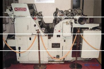 特徴 | 昭和37年10月に製作した三菱印刷機の第1号機です。14年間稼働しましたが、顧客のご好意により当所の創業記念機械として譲り受けたものです。 |