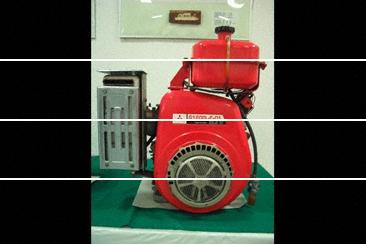 乗用モアー用エンジン。スロットルレバーを上部にセットし、操作性を高めた。 |
