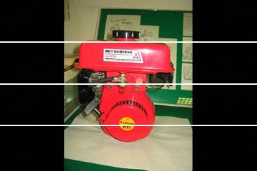 田植機用エンジン。スロットルレバーを上部にセットし、操作性を高めた。 |