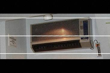 当社でのルームエアコン生産の歴史として展示。(壁掛型冷暖房インバータタイプ初号機) |