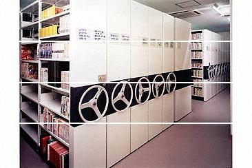 特徴 | 丸ハンドル式移動棚「TKZ」は、棚と棚のスペースを最小限に抑え、スペースを最大限に活用するために開発された。一定量の収納に必要なスペースは従来の固定棚に比べ1/3にすることが可能となった。丸ハンドルを採用することにより安全で使い勝手のよい操作性を実現できるとともに小さな力ですむため、誰でも簡単に操作できる省スペース収納システムである。 |
