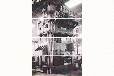 特徴 | 群馬県太田市の「中島飛行機」で使用されていた米国製の2000T油圧成形プレスを軍の許可を得て解体、スケッチし、当社のほか2社が昭和15年に複製したものが国産油圧プレスの1号機と言われている。飛行機のボディーの成型のために使用されていた。駆動源となる油圧ポンプは川崎重工が開発したものが使われた。 |