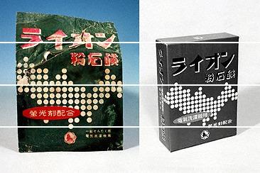 1952年に電気洗濯機用粉石鹸の発売に引き続き、1953年に日本で初めて蛍光剤を配合した電気洗濯機用粉石鹸である。電気洗濯機の普及に伴い好評を得た。 |