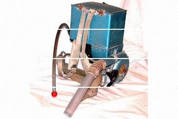 特徴 | 背負型動力散粉機は、1955(昭和30)年ごろ、首掛けの手回し散粉機を動力化し、背負い型にしたものである。粉剤を吹き出す噴頭も、直進噴頭・拡散噴頭など多数作られ、防除の目的に応じ使い分けられた。この一つに多口ホース噴頭があり、能率的で使いやすいことから、この散粉機は、またたくまに全国に晋及した。ほぼ同時期に、農薬の剤形に応じ、動力噴霧機・動力ミスト機も市販され、使われた。 |