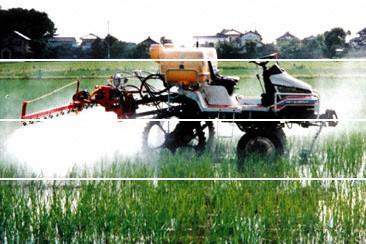 特徴 | 乗用管理機は、水田内で薬液や粒剤による防除作業、肥料散布などのための作業機を取り付けることのできる乗用の作業機である。乗用田植機を改良する中から生まれてきた機械で、田植機や直播機を取り付けることもできる。写真は共立社製の乗用管理機で、500リットルの薬液タンクを備え、散布幅は約10mである。(農薬害を避けるため、遠隔操縦により無人運転中。) |