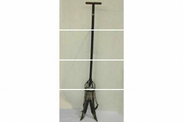 特徴 | 第2次大戦中に、農村の労力不足対策として稲・麦刈取機の懸賞募集が行われ、立姿で稲刈のできる松野式と呼ばれる押刈式が入選した。戦後さらに種々の考案がなされた。長い柄を持ち、刈取部を田面にずらせながら推し進めると、稲は鋏状の2枚刃により根元から押し切られ、枠内に押し込こまれて1束分となる。これを側方に移して柄を引くと刈株は束状に置かれる簡易な刈取機。バインダの普及により、1963年頃には姿を消した。 |