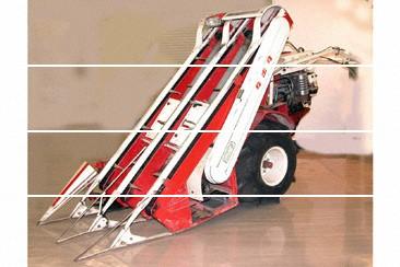 特徴 | 稲・麦を往復動刃で刈取りながら連続的に結束作業する、画期的な機械が昭和30年代後半に開発された。この刈取機は、突起付き引き起こし装置によって、倒伏した作物を適当な状態に引き起こして刈取部に供給し往復動刃で刈取る。これを結束部に集めて、一定量づつ化繊紐で結束し、側方に排出する作業工程を連続して行う。バインダの大きさは、刈取部の条数によって異なる。2・3条刈りが最も多く普及。 |