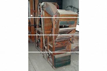 特徴 | 全自動もみ摺機は、昭和20年代(1945〜1955年)後半から本格的な普及をみたもので、主に三つの工程から構成されている。第一は、もみからもみ殻をはずすゴムロール式脱稃(ぷ)部であり、第二はもみ殻やしいなを除去する風選部で、第三はもみと玄米を選別する万石部、又は揺動板選別部である。この三機能を搬送装置によって、穀物の流れがスムースに行くよう構成されている。作業を容易にする種々の対策が講じられている。 |
