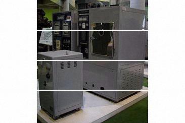 光源の分光エネルギー分布、光エネルギー量及び温湿度等の雰囲気条件など、各試験機についてかならずしも一定ではない。これらを補完するために、標準青色染料布(ブルースケール)や光度試験紙が用いられているが、これらの標準資料の精度向上や国産化を進めるためには、広く用いられている耐光試験機の基準となりうる高精度の試験機の出現が望まれていた。本装置は昭和42年に試作されたものであり、JISB-7751に規定されている規格を具備していると同時に、放電電流の自動調節、機内温湿度、ブラックパネル温度および照射エネルギー量の波長域別積算記録等を行うことが出来る。試作完了後日本学術振興会第134委員会等による基準耐光試験機研究委員会を発足させ、基準機としての妥当性を検討した結果、JIS-L0824、JIS-L0842に本装置を光度校正の基準として記載した。 |