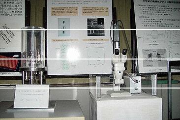 特徴 | 1985年に日本で最初に安定してNbSe2およびグラファイト表面の原子像観察ができた装置。NbSe2およびグラファイト表面の原子像観察ミステリーの研究、ナノ構造形成の研究等を行った。産官学(電総研、セイコー電子、東芝、他)連携で開発した装置。この装置を基にセイコー電子工業はSTM装置の製品化を行った。 |