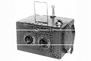 特徴 | セミ判のステレオカメラ。昭和10年8月発売。形式:レンズシャッター式透視ファインダーカメラ、感光材料:120フィルム、画面サイズ:45×60ミリ、価格:ステレオビューワー共で7円。 |