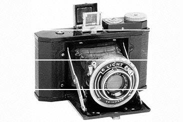 40×50ミリ判のスプリングカメラ。昭和13年4月発売。形式:レンズシャッター式スプリングカメラ、感光材料:127フィルム、画面サイズ:40×50ミリ、価格:58円。 |