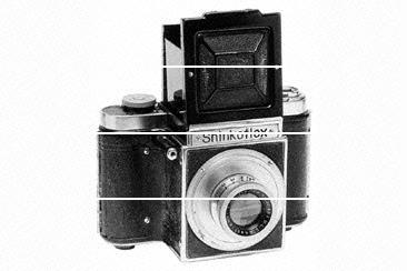 60×60ミリ判一眼レフ。昭和15年発売。形式:フォーカルプレンシャッター式一眼レフカメラ、感光材料:120フィルム、画面サイズ:60×60ミリ、価格:不明。 |