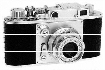 特徴 | 35ミリフィルム使用の24×34ミリ判フォーカルプレンシャッターカメラ。昭和24年3月発売。形式:フォーカルプレンシャッター式透視ファインダーカメラ、感光材料:135フィルム、画面サイズ:24×34ミリ、価格:35,000円(50ミリ F3.5付)。 |